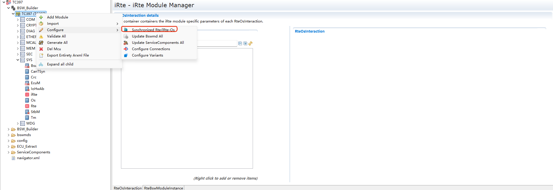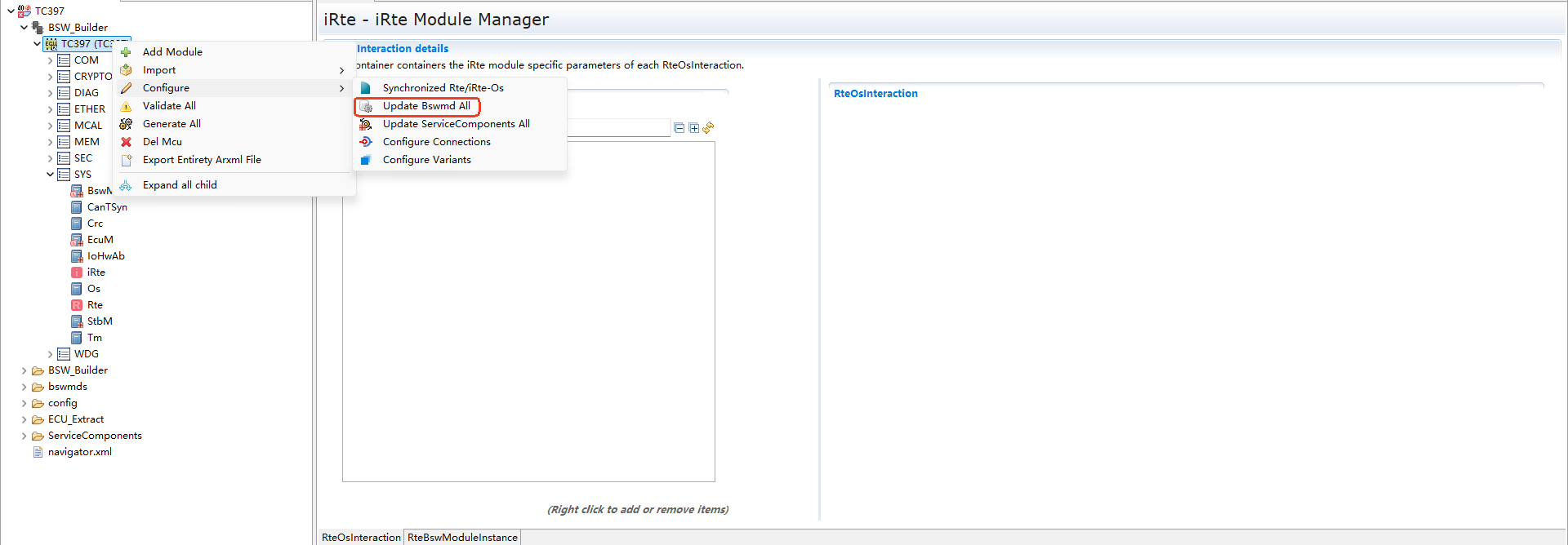 The relevant configuration RteOsInteraction, mainly including the startup configuration of iRTE for OsAlarm, OsTask, and OsScheduleTable.