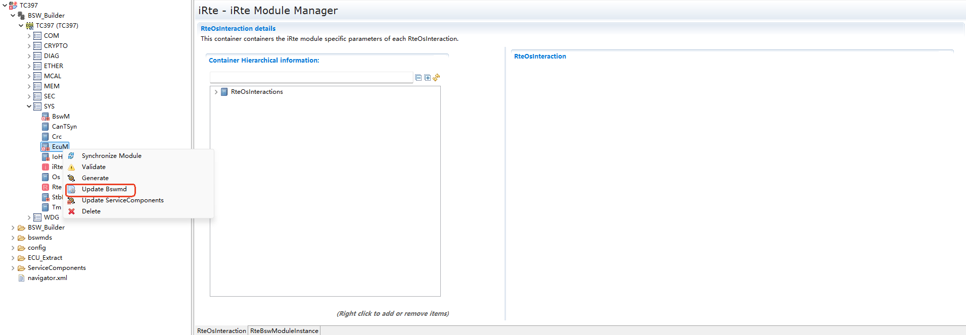 相关配置RteBswModuleInstance,将BswImplementation(定义在模块描述文件中)关联至RteBswImplementationRef中。