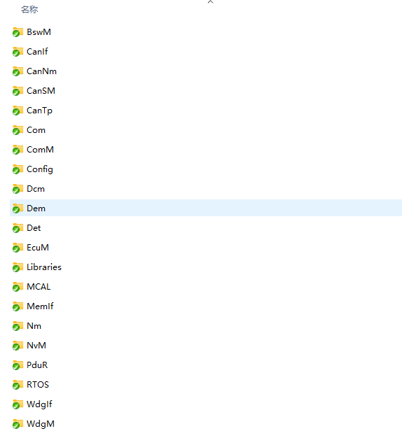 BSW:存放BSW相关代码,包括AUTOSAR各个协议栈源代码和配置、MCAL的源代码和配置、复杂驱动的源代码和配置等。