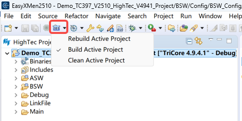 After importing the BSW project into the IDE, click Build Project to compile the project.