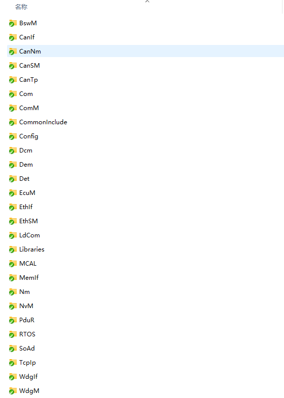 BSW:存放BSW相关代码,包括AUTOSAR各个协议栈源代码和配置、MCAL的源代码和配置、复杂驱动的源代码和配置等。