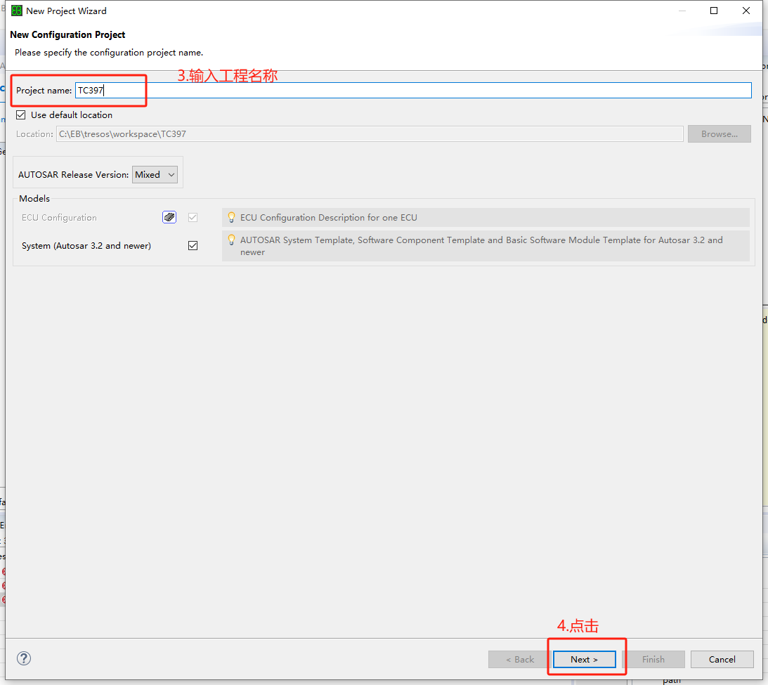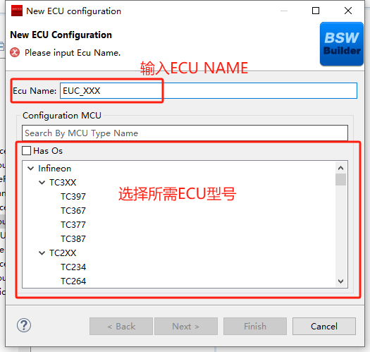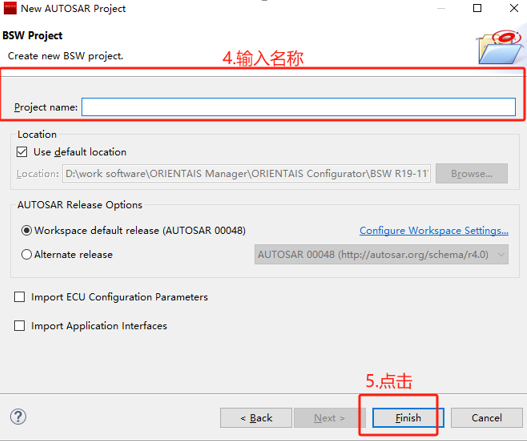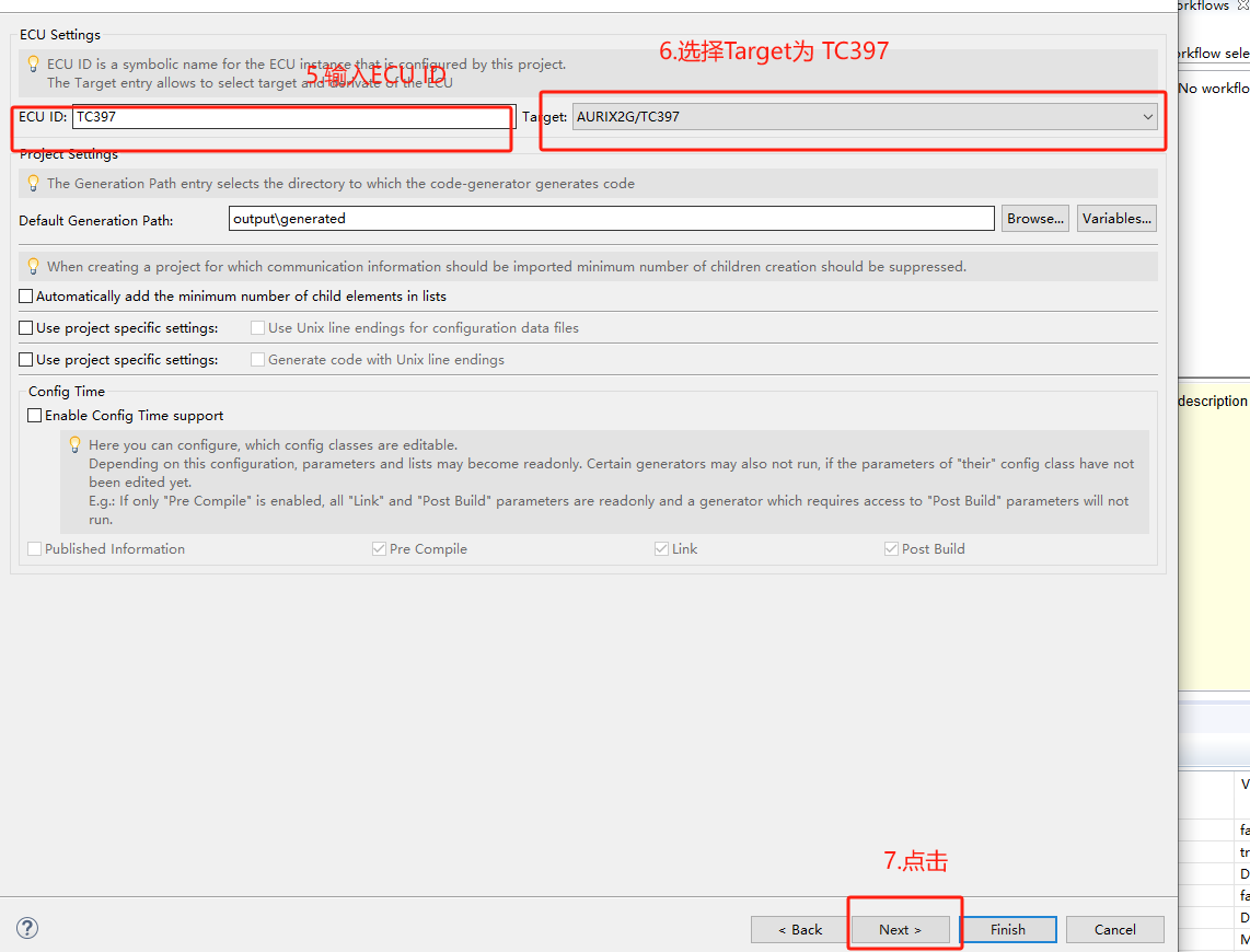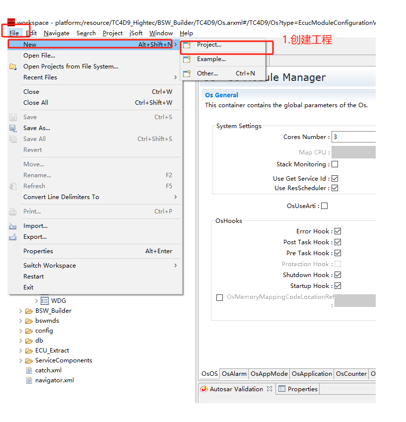 详细步骤细节参考“BSW工程创建”章节 |