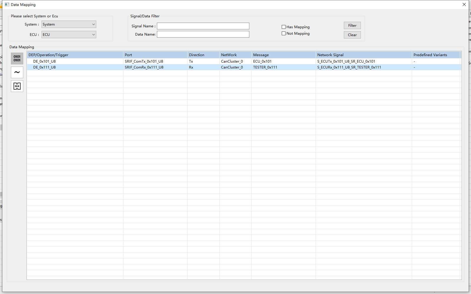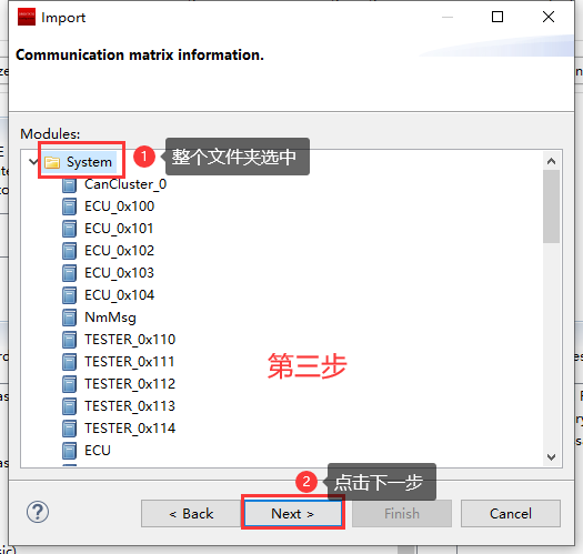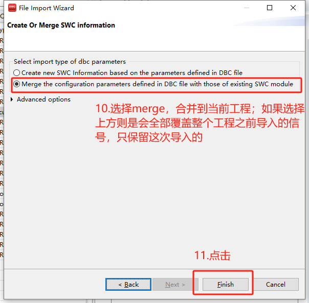 导入设计好的DBC文件(Ldf、Odx等类似) 注:此类文件导入有两种方式,1.导入到SWC;2.导入到BSW; DBC导入到BSW工具的步骤见附录章节; |