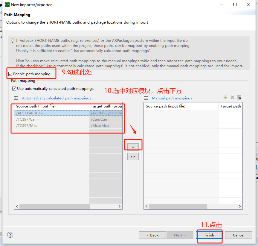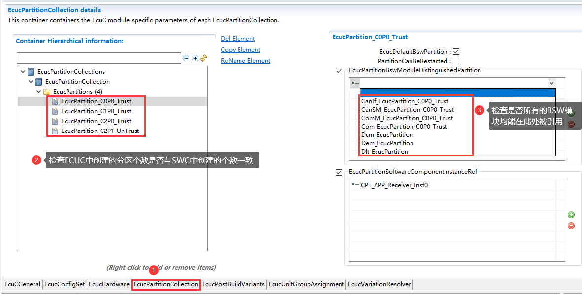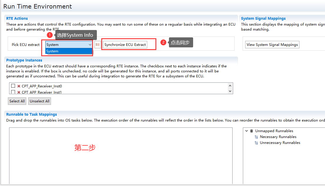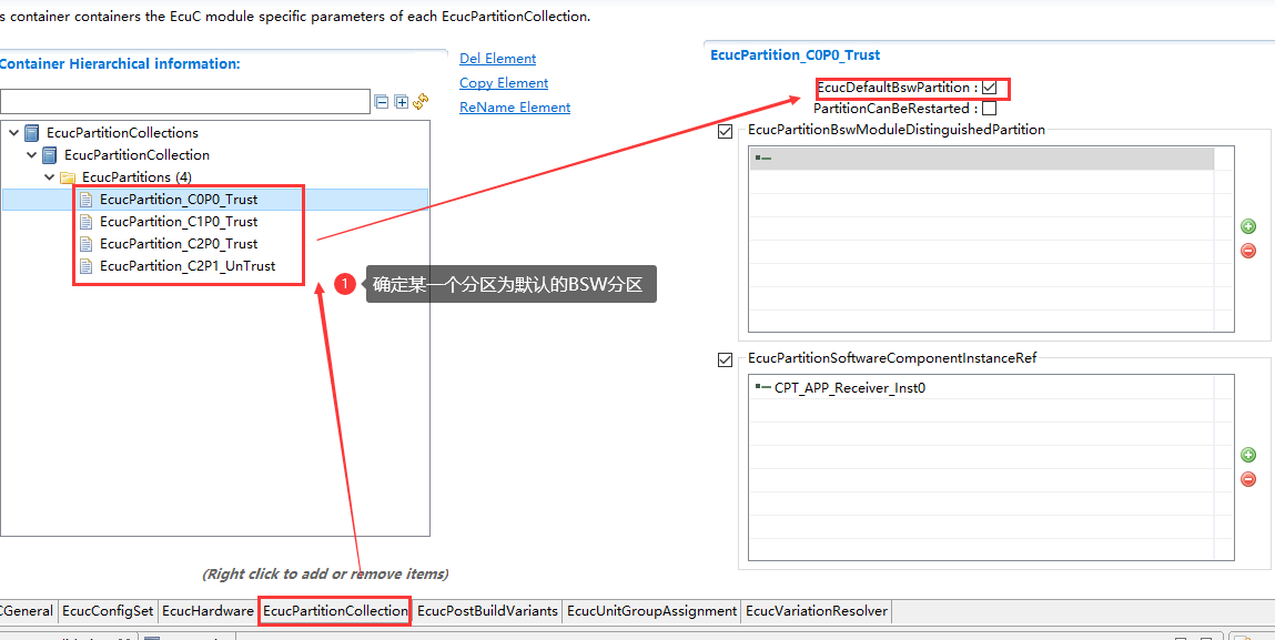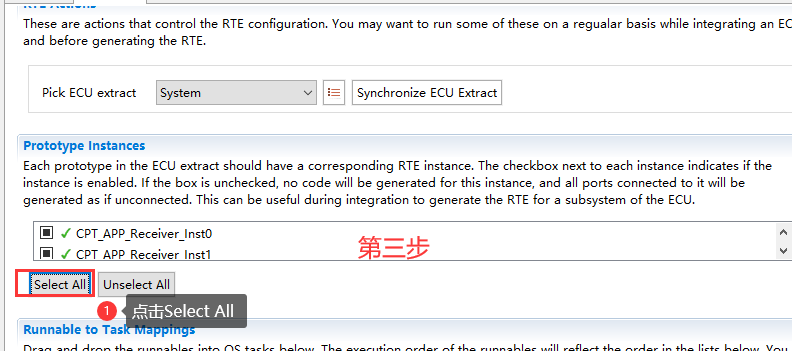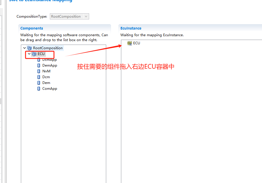 SWC实例与ECU映射; 主要描述组件分配到分区的操作步骤; |