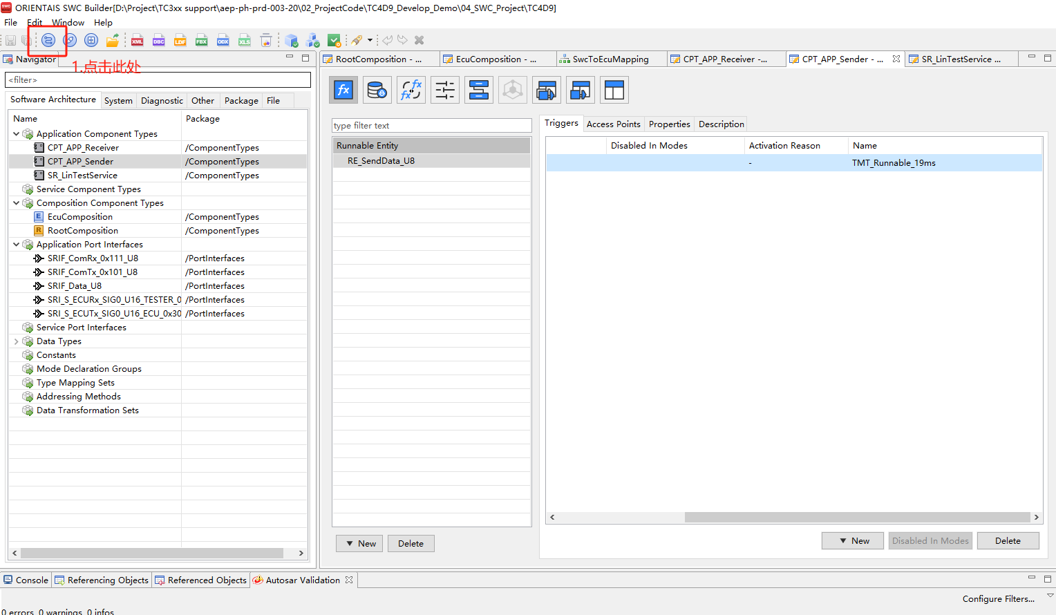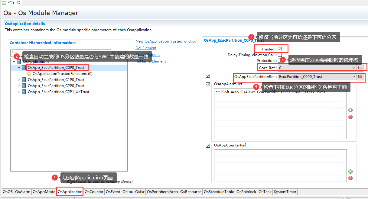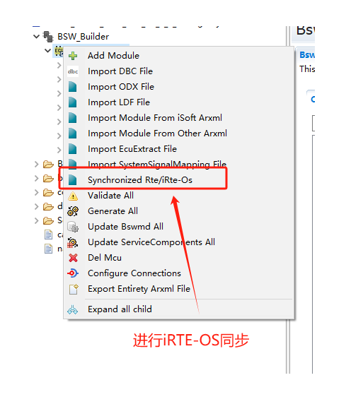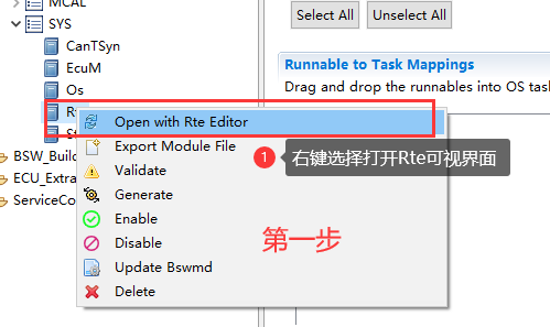 步骤7中,所有的bsw模块映射关联到EcucPartitionCollection后,需要重新生成一次所有模块的bswmd文件,做好RTE-OS同步前准备(同步骤4) |