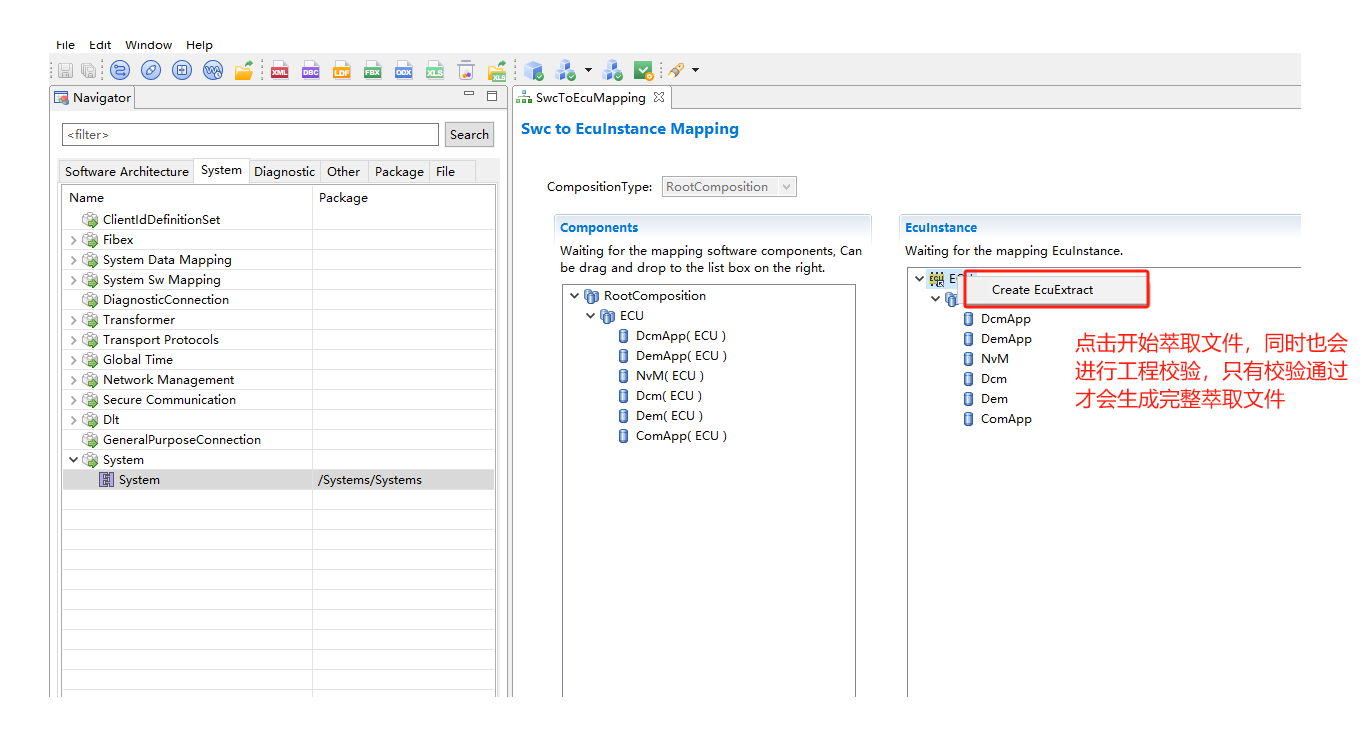 基于单个ECU进行配置萃取,生成EcuExtract萃取文件 |