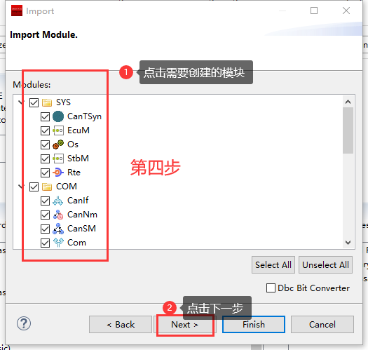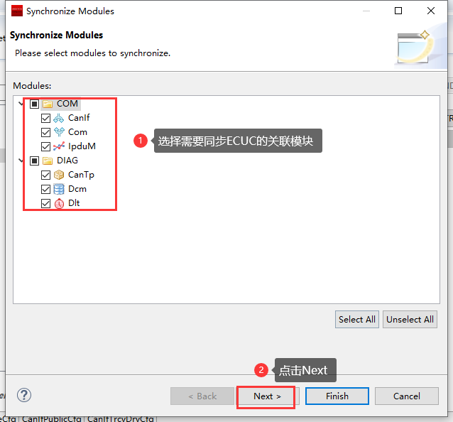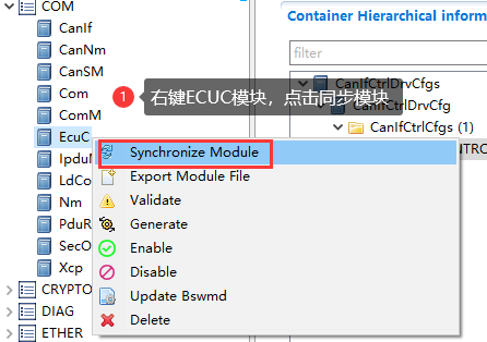 操作完步骤5后,同步ECUC模块 |