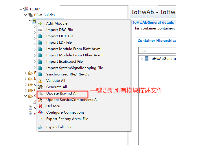 更新所有模块的bswmd.arxml文件(包括RTE) |