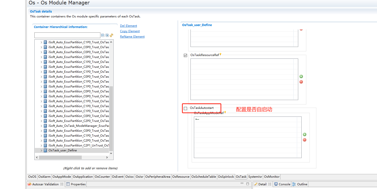 完成上述8步骤后,使用Orientais RTE自动同步功能,进行RTE和OS自动配置; 注意:一般只有在首次配置和大量变更时,才使用RTE&OS同步功能;因为RTE&OS同步会覆盖部分task的映射,导致多余变更需要进行手动修改。 工程变动较小时,可参考下个步骤手动修改task |