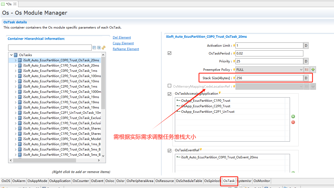 iRTE&OS同步后配置微调,如: OS调整任务、中断的堆栈大小等; |