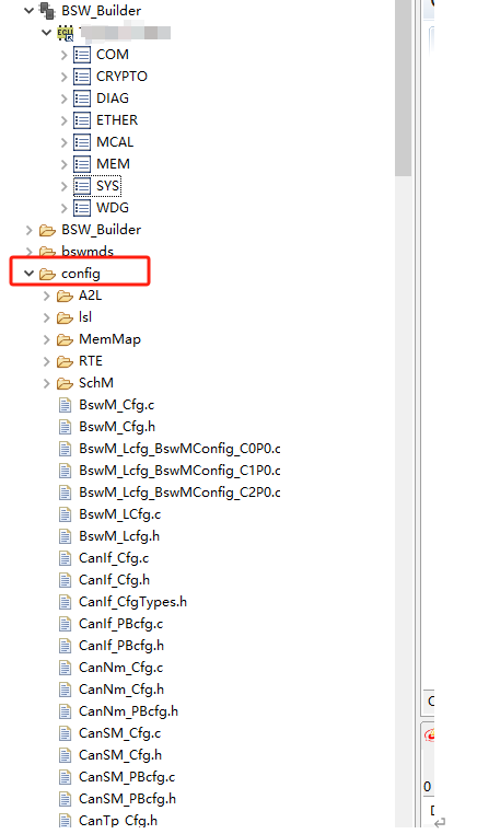 BSW下的Config目录用来存放配置工具生成的配置文件,各模块或各栈建立对应文件夹存放对应模块配置代码。