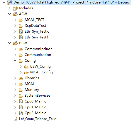 示例工程有如下几点说明:1.Hightec集成工程未使用链接文件夹形式引用到BSW配置工具以及EB MCAL生成的配置文件,因此更新配置之后必须手动Merge替换代码,之后再刷新工程即可编译;2.BSW源码是是按照模块化Demo需求集成到不同的Demo工程中,并非全量代码;