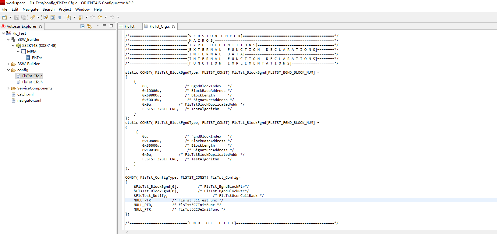 FlashTest代码包括两部分:项目提供的FlashTest源码和ORIENTAIS Studio配置生成代码。