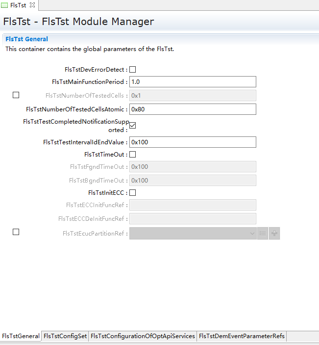 FlsTstEcucPartitionRef:将Flash测试驱动程序映射到零个或一个ECUC分区,以使驱动程序API在该分区中可用。