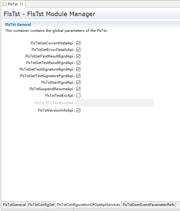 FlsTstInitECC:预处理器开关,以在初始化函数中禁用/启用硬件ECC报错功能,在硬件不支持测试时,通常不开启。