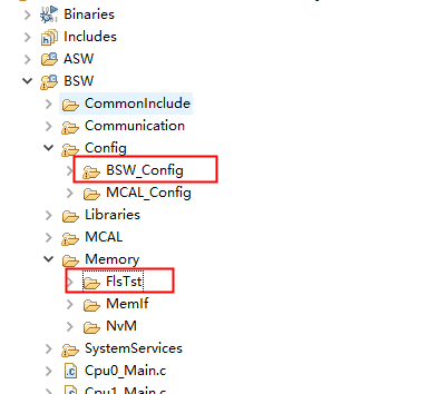 Config目录,这个目录用来存放配置工具生成的配置文件,FlashTest有关的配置文件放在BSW_Config文件夹中。
