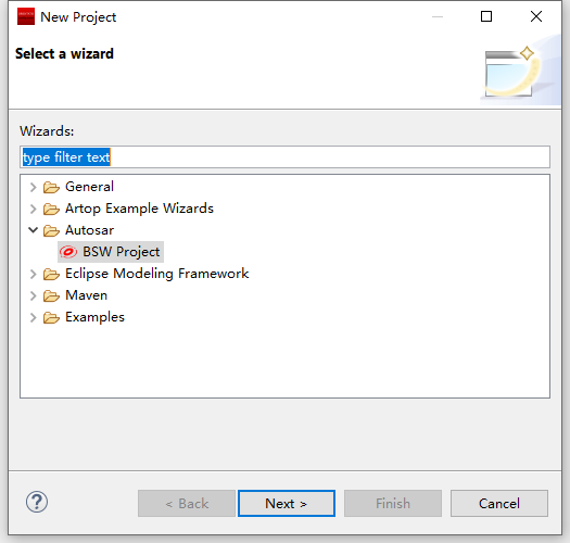 在弹出的新建窗口中选择Autosar下的 [BSW Project],选择Next。