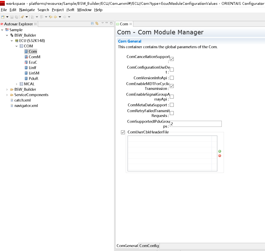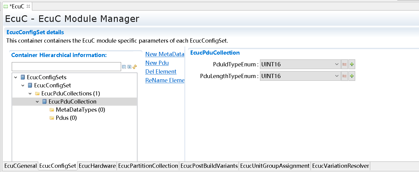 用于辅助配置工具完成配置的模块。主要提供Pdu的定义,其它模块通过关联EcuC中Pdu,相互关联起来。 |