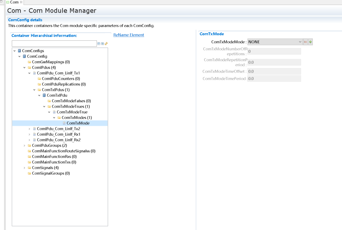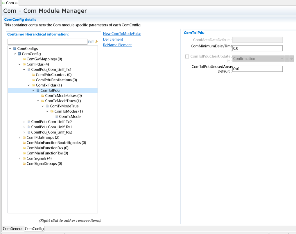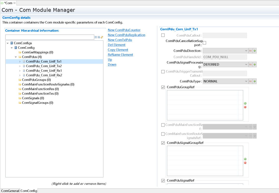 为发送报文配置ComTxIPdu(以ComIPdu_Com_LinIf_Tx1为例)。每个发送IPdu,必须要配置一个ComTxIPdu,参数保持默认值即可。只发送报文需要配置。