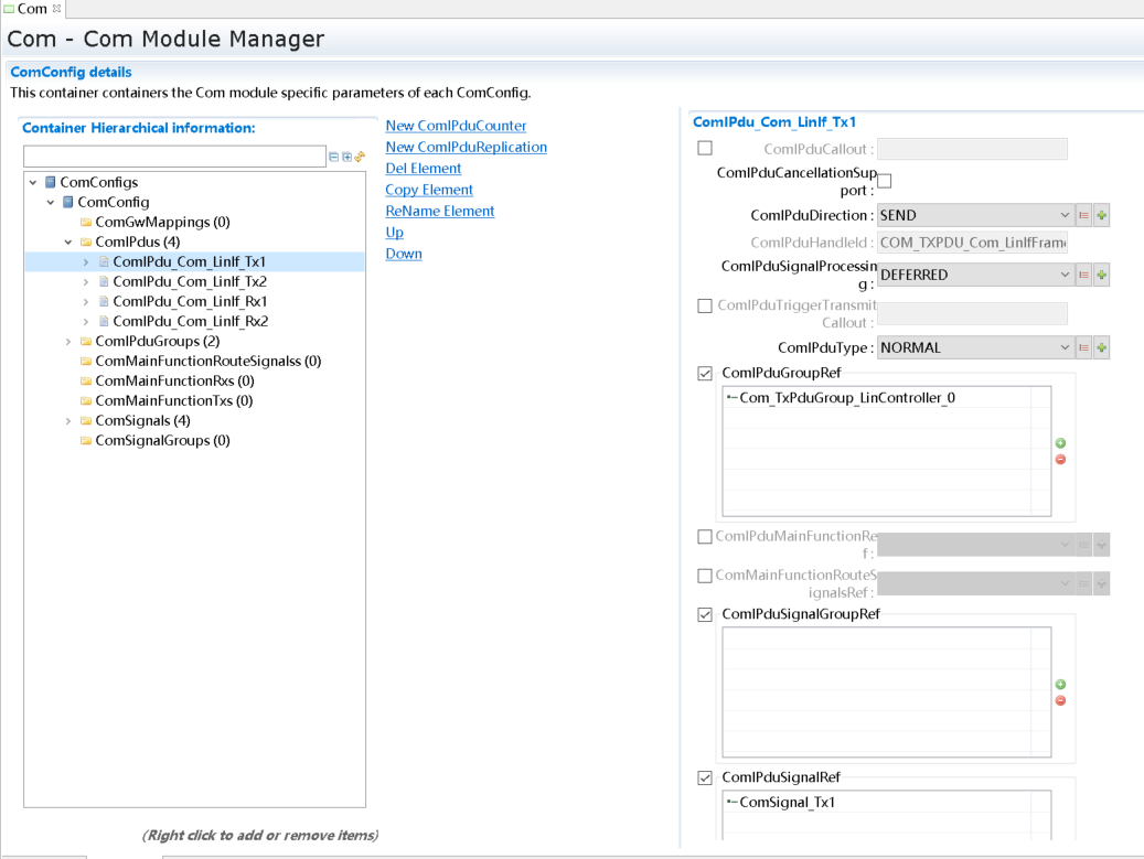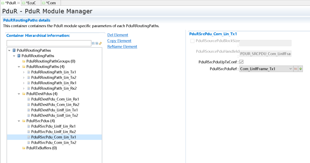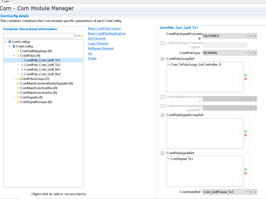 Pdu的接收或发送有源头也有目的地。发送报文,是从Com到LinIf,所以SrcPdu选择Com模块中关联的Pdu,DestPdu选择LinIf中关联的Pdu。
