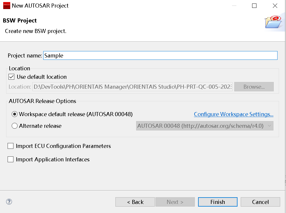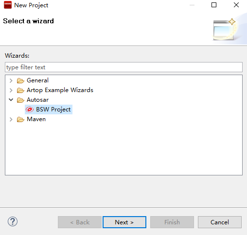 在弹出的新建窗口中选择Autosar下的 [BSW Project],选择Next