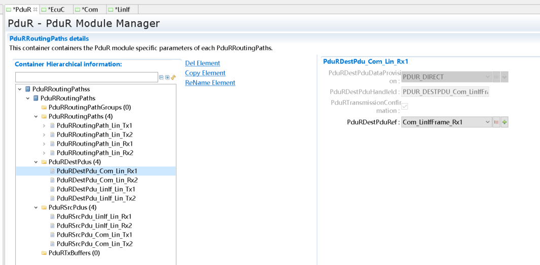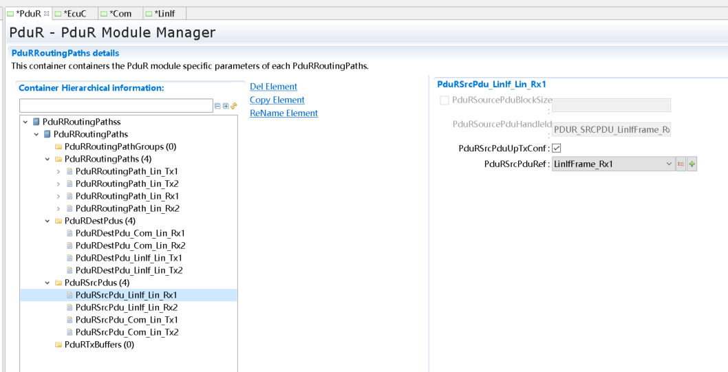 接收报文,是从LinIf到Com的,所以SrcPdu选择LinIf模块中关联的Pdu,DestPdu选择Com中关联的Pdu。