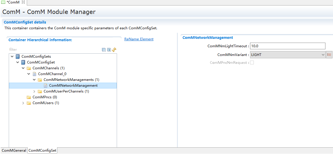 ComM模块主要进行通信的管理功能。ComM模块收集用户的总线访问请求,并把请求转发到不同的总线。 |