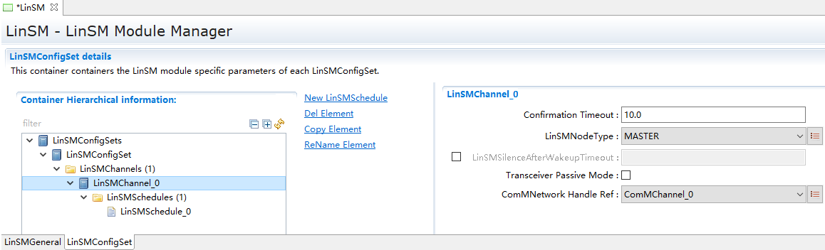 主要功能是与通信硬件抽象层和系统服务层产生交互,为每一个Lin通信总线定义一个总线相关的状态管理,并为相关的总线提供流控制。 |