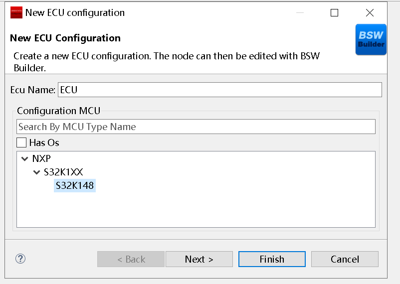 在工程的[Bsw_Builder]项目上右键,选择New ECU Configuration
