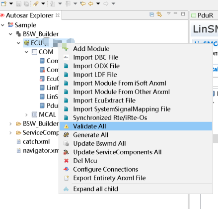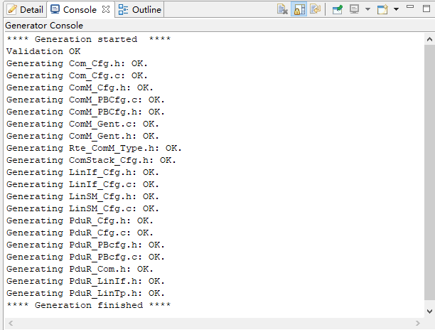 校验配置,无错误信息,PduR模块即配置完成。