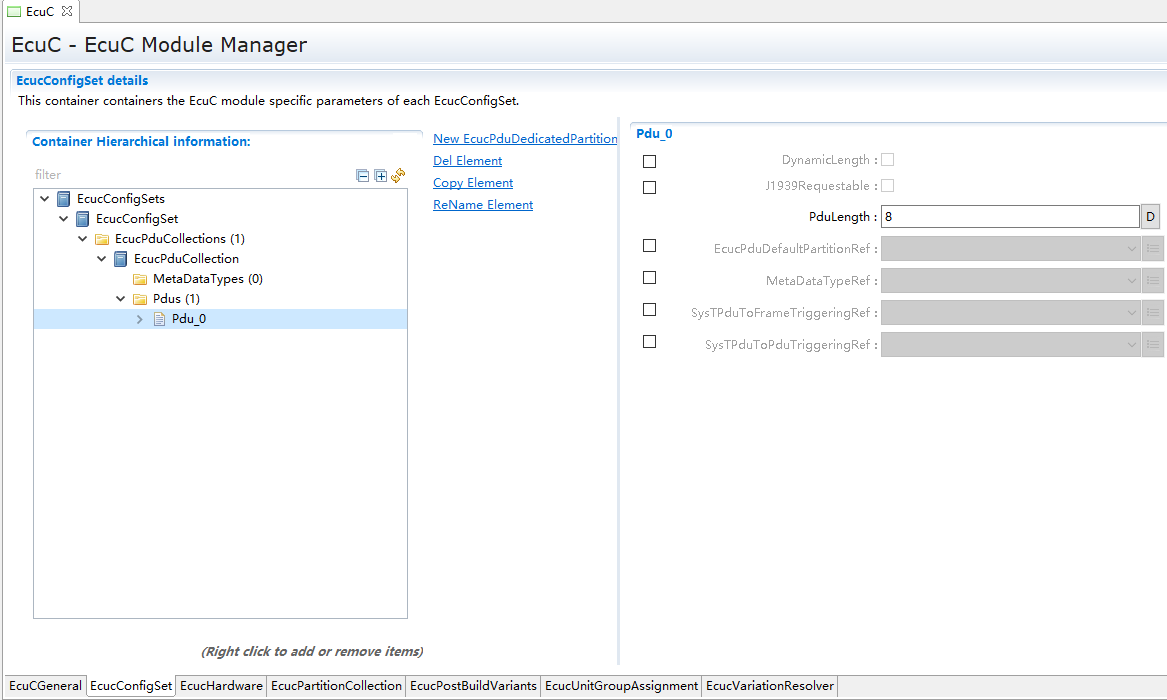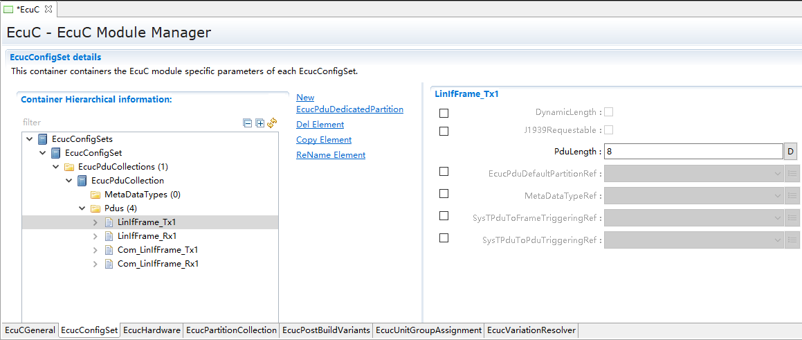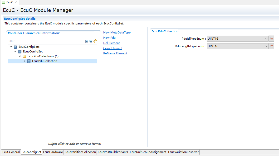 用于辅助配置工具完成配置的模块。主要提供Pdu的定义,其它模块通过关联EcuC中Pdu,相互关联起来。 |