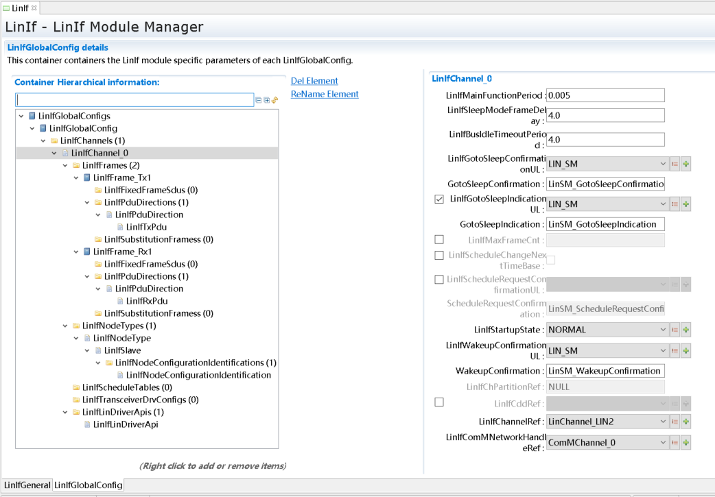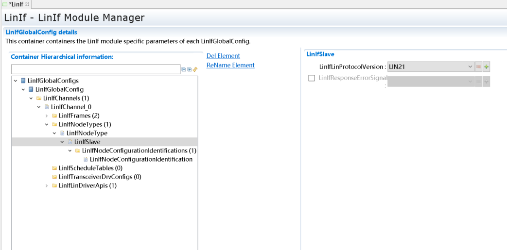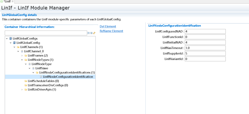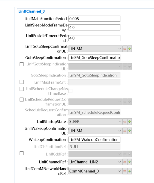 Lin驱动配置。(由MCAL工具导入) |