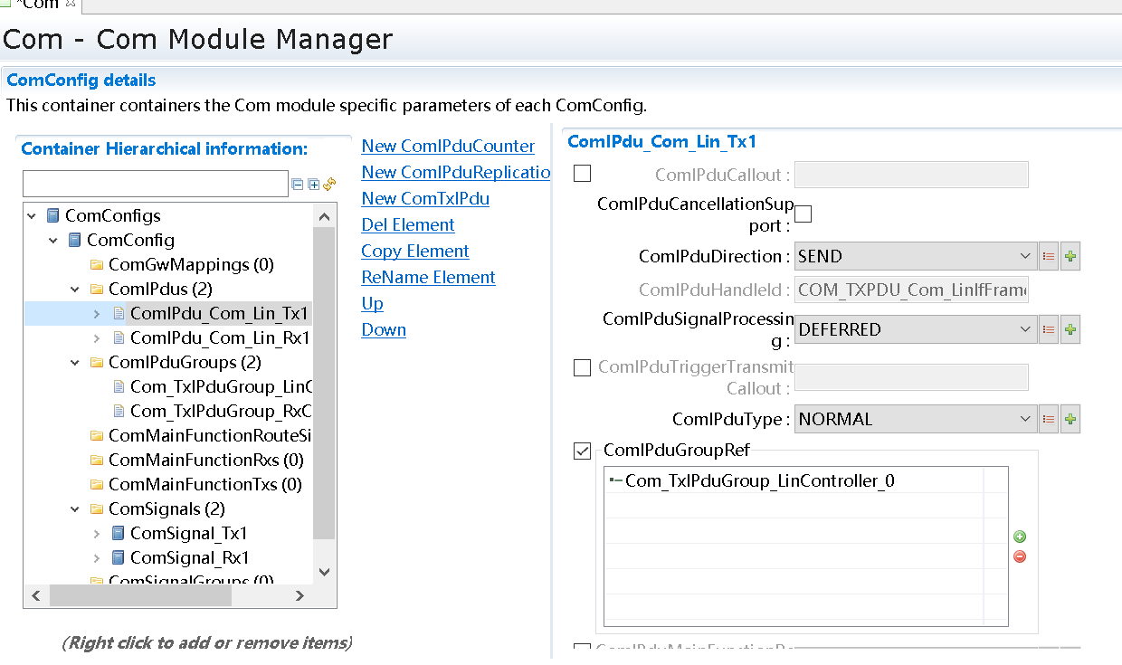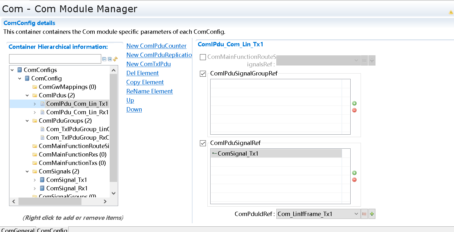 Pdu的接收或发送有源头也有目的地。发送报文,是从Com到LinIf,所以SrcPdu选择Com模块中关联的Pdu,DestPdu选择LinIf中关联的Pdu。