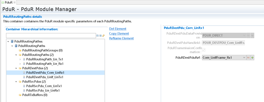 接收报文,是从LinIf到Com的,所以SrcPdu选择LinIf模块中关联的Pdu,DestPdu选择Com中关联的Pdu