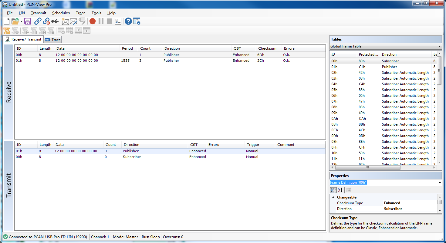 根据集成目标,第5章一共配置了2个报文帧,其中1个周期发送报文,1个周期接收报文。