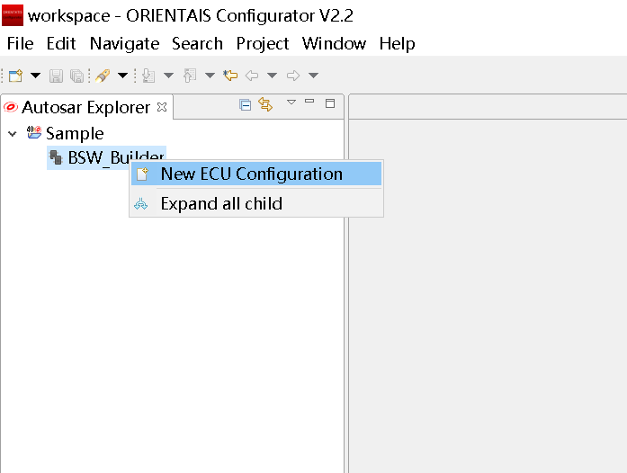 在工程的[Bsw_Builder]项目上右键,选择New ECU Configuration。