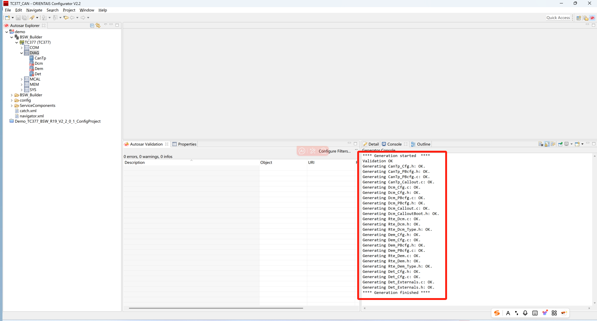 选择Validate All对本协议栈各配置选项进行校验,没有错误提示信息即校验通过。若有错误信息,请按照错误提示修改。