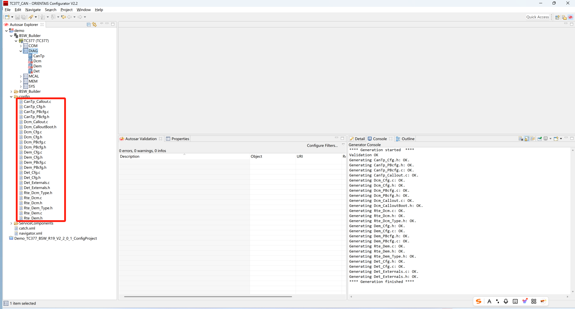 将在章(配置代码生成)中ORIENTAS配置生成的诊断相关配置文件添加到工程中。