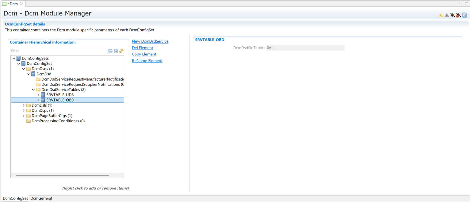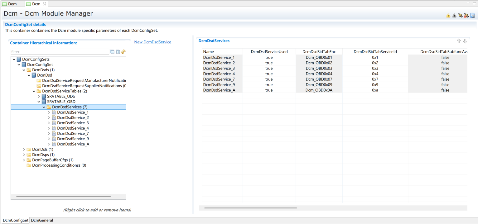 DcmDslProtocolSIDTable选择DcmDsdServiceTable中的OBD服务表;