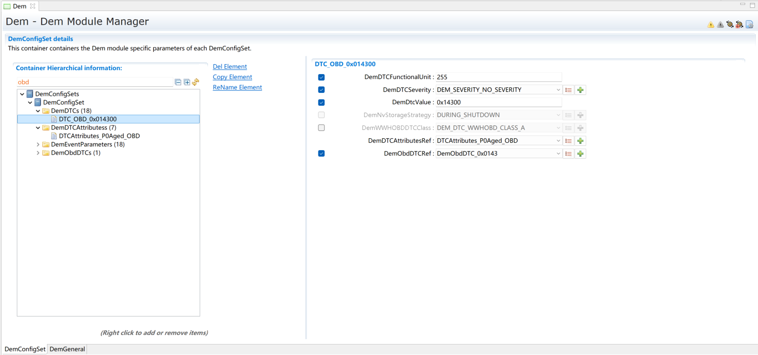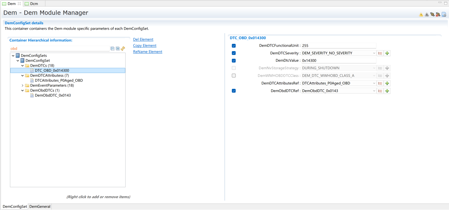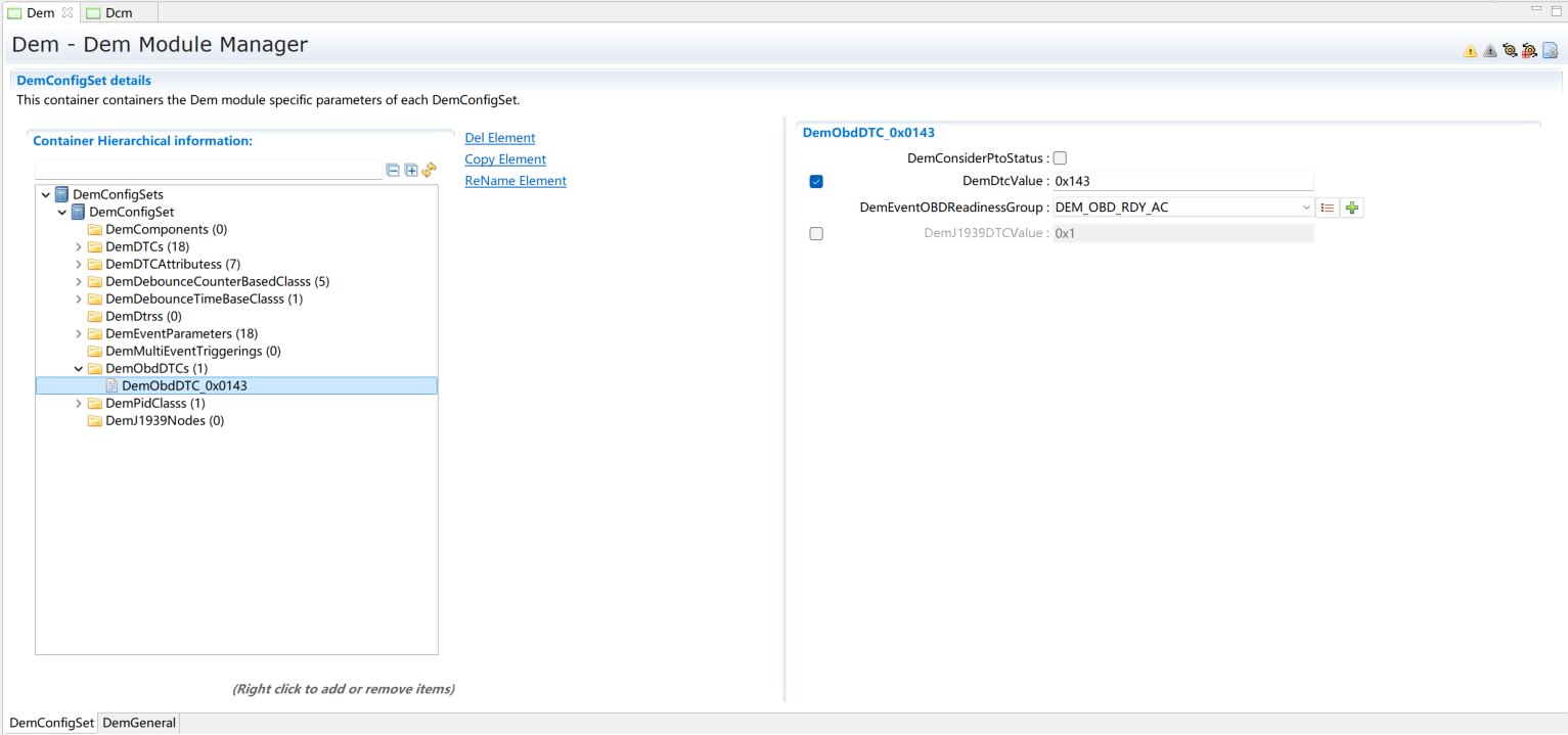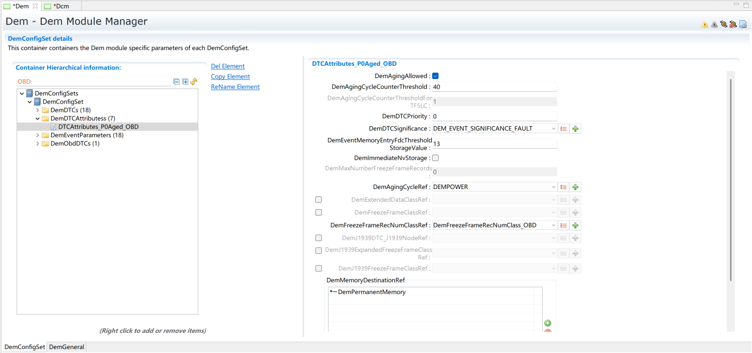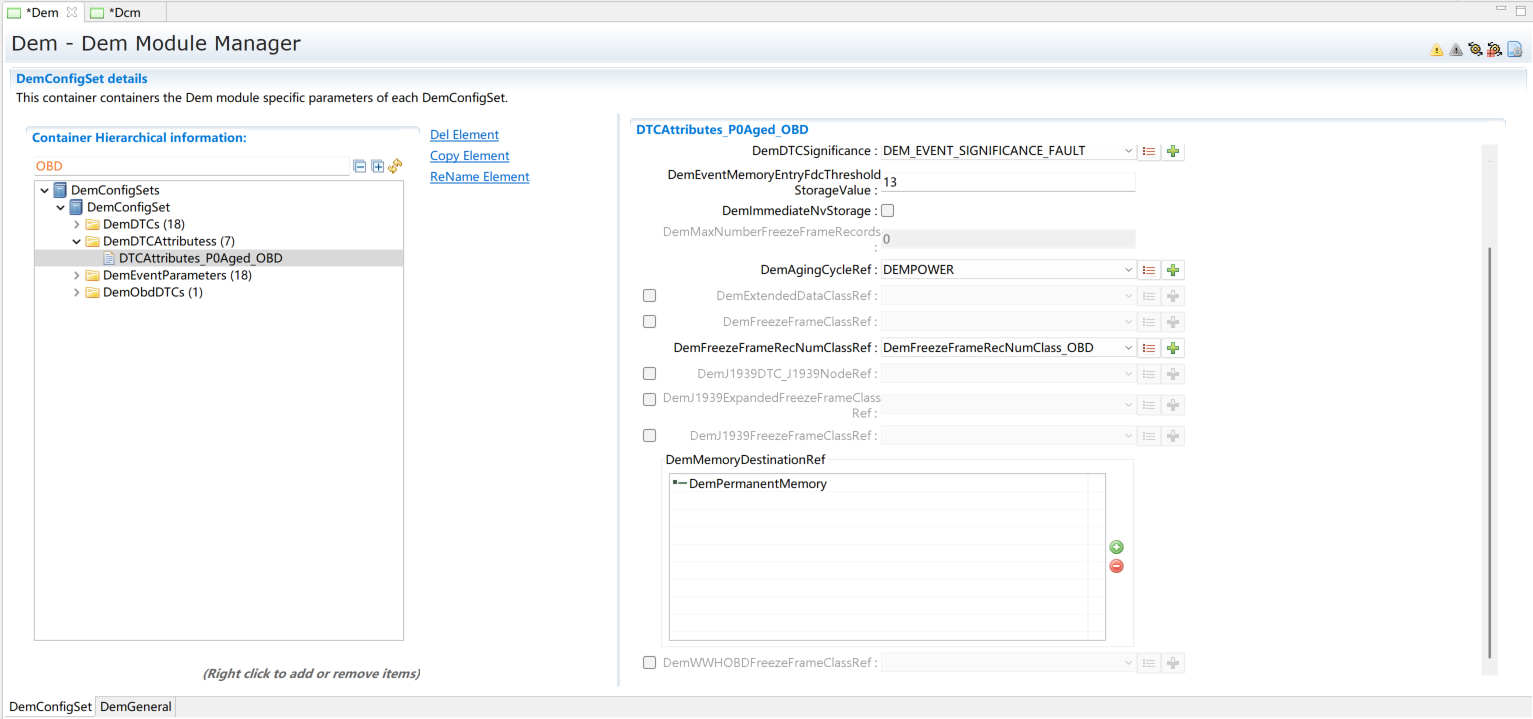 添加DemDTC并配置,根据需求选择DemDTCAttributes。
