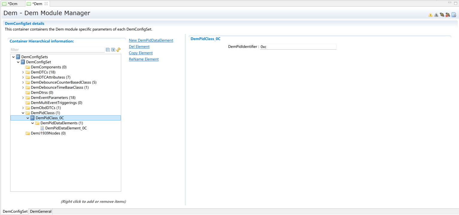 配置DemPidClass中DemPidIdentifier,并关联步骤1中DemExternalCSDataElementClass