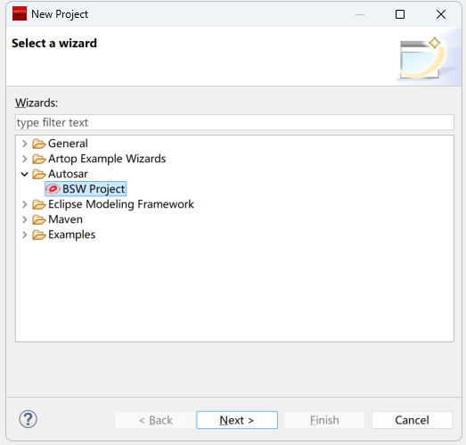 在弹出的新建窗口中选择Autosar下的 [BSW Project],选择Next。