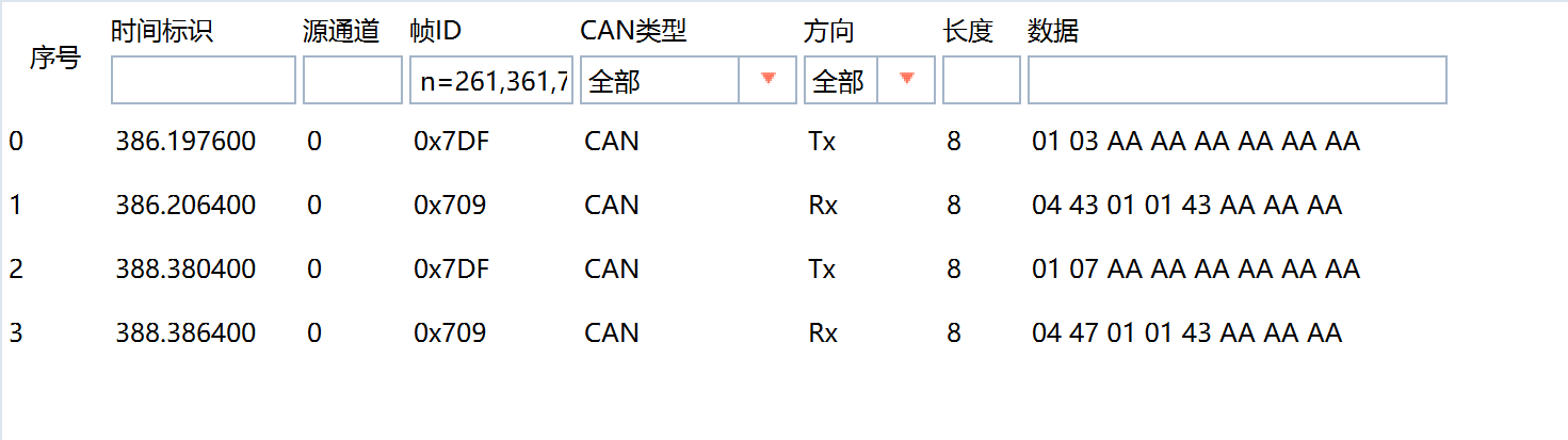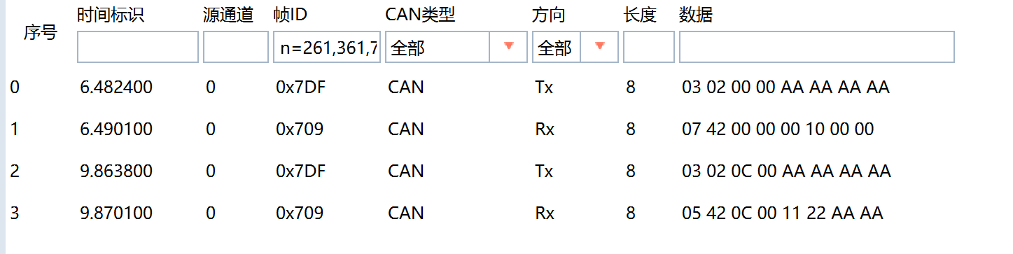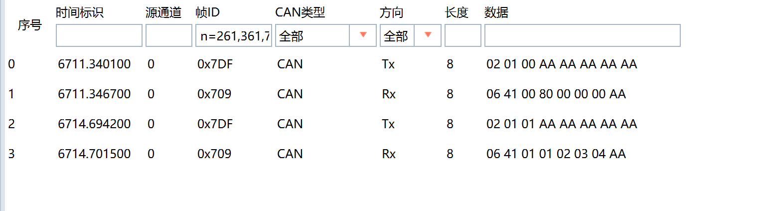 通过CAN工具向ECU发送01服务请求报文:
