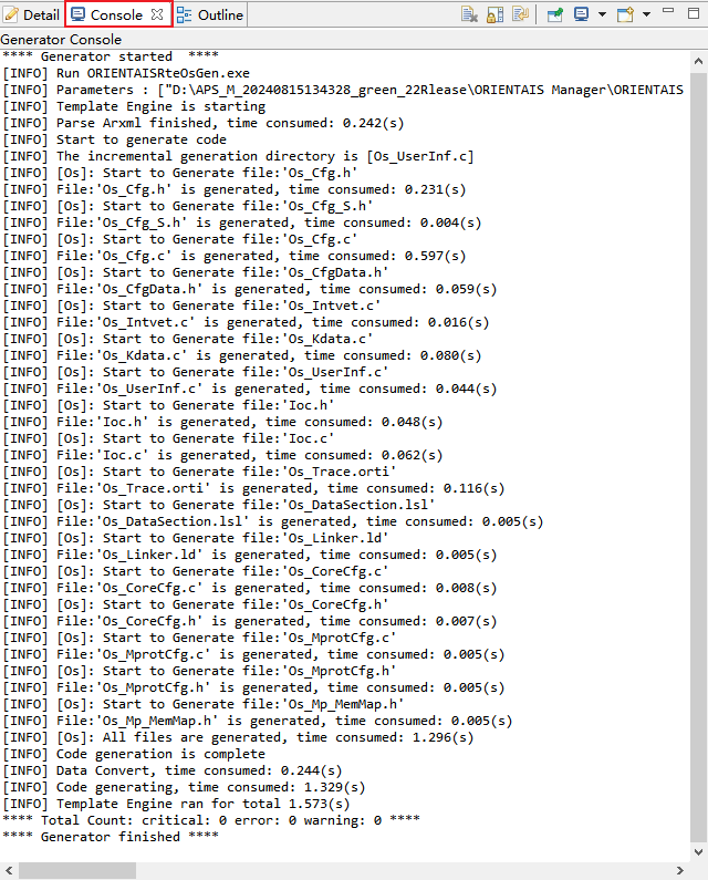 将章节(模块配置及生成代码)中ORIENTAIS Configurator生成的配置文件复制到BSW/Config/BSW_Config文件夹中。