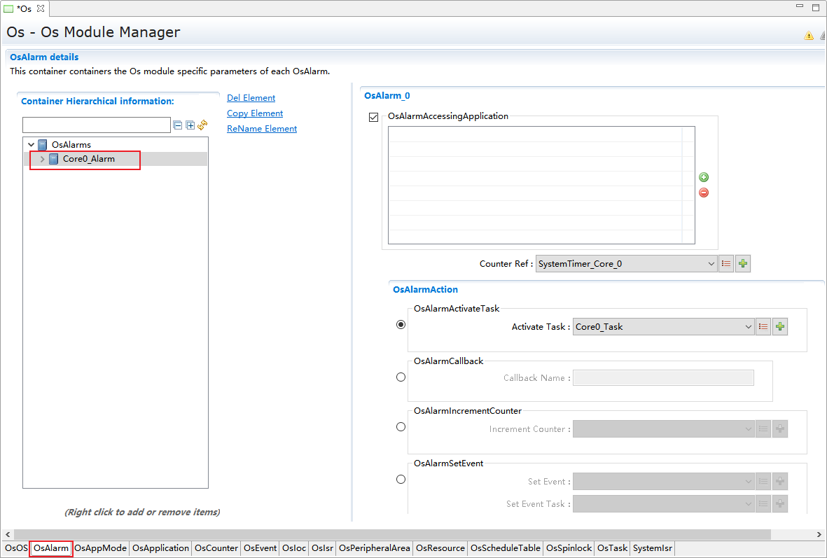 选择驱动Alarm的Counter:SystemTimer_Core_0。