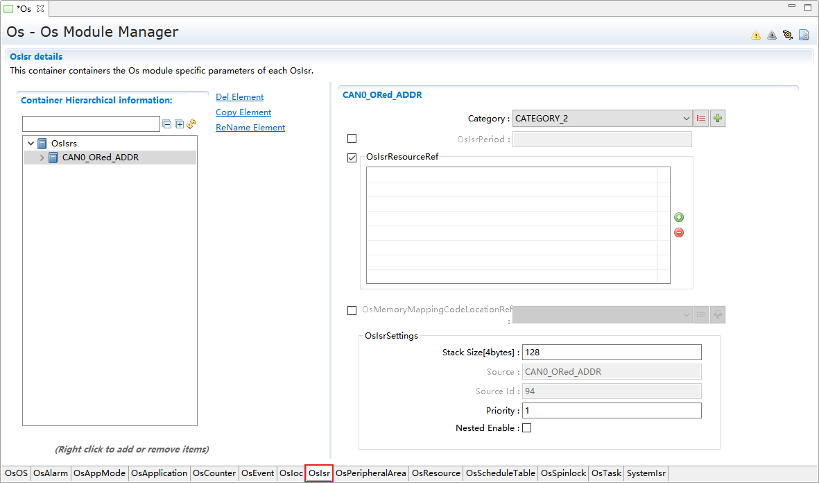 设置CAN0_ORed_ADDR中断栈空间为:128(单位:4bytes)