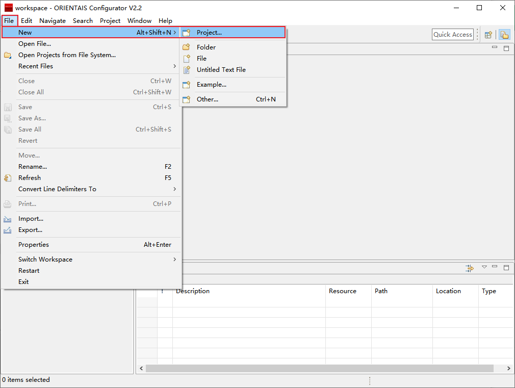 本章节仅描述ORIENTAIS Configurator建立配置工程的方法,不描述如何配置OS,配置示例请参考本文档的章节(集成示例)。