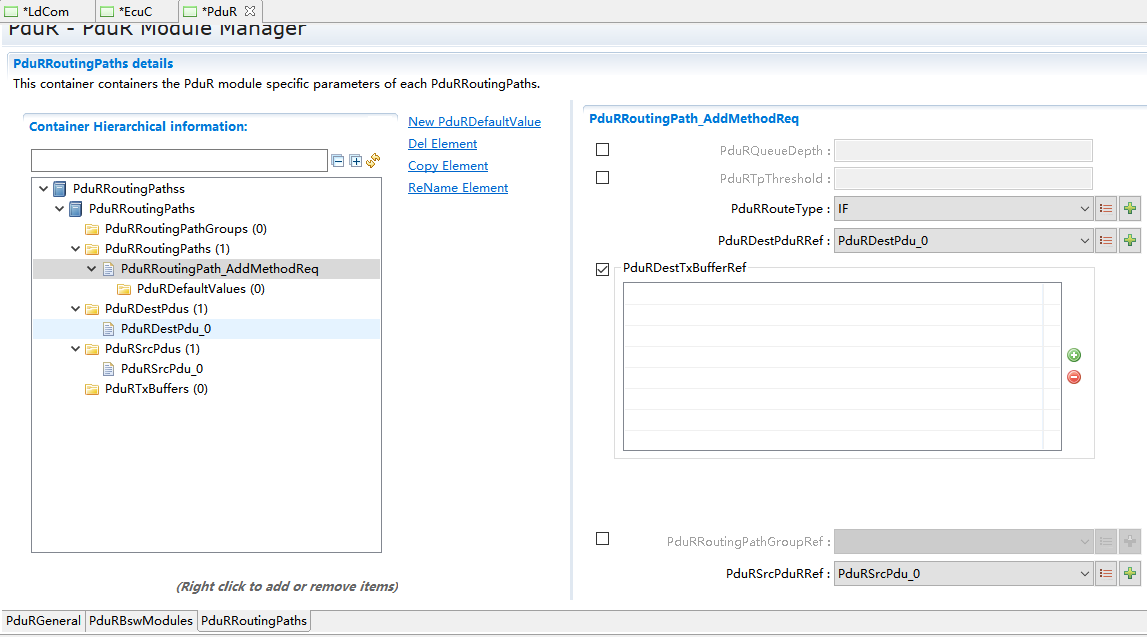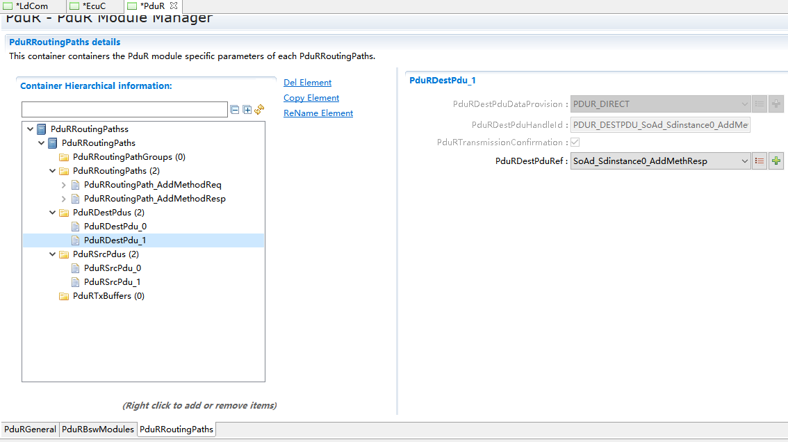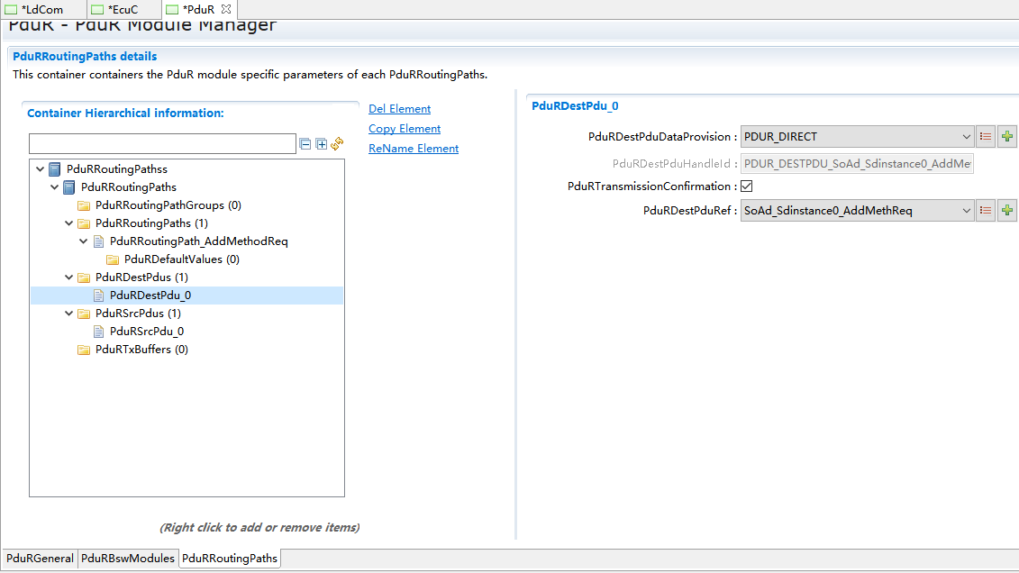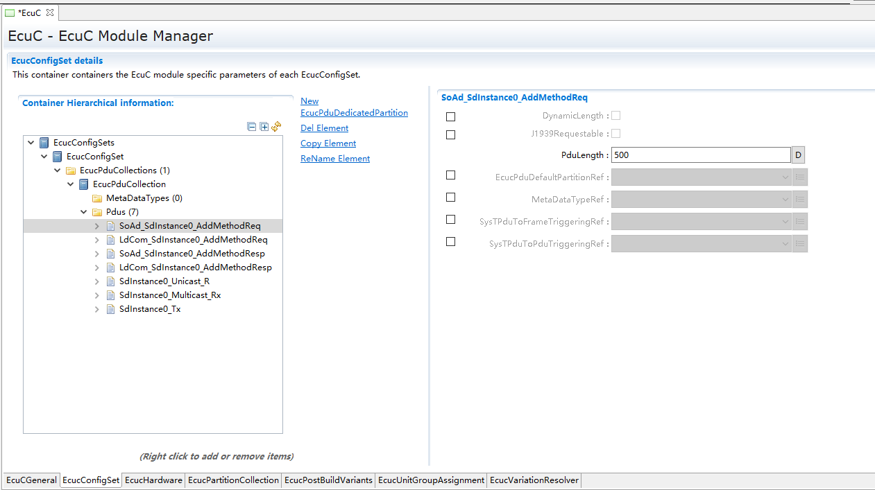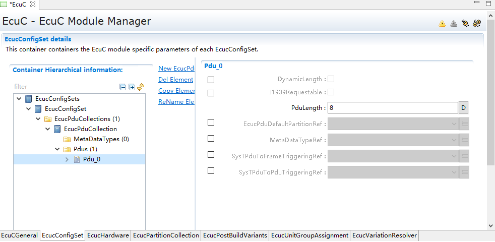 在EcucPduCollection上右键,选择Pdu,生成一个Pdu的配置界面。