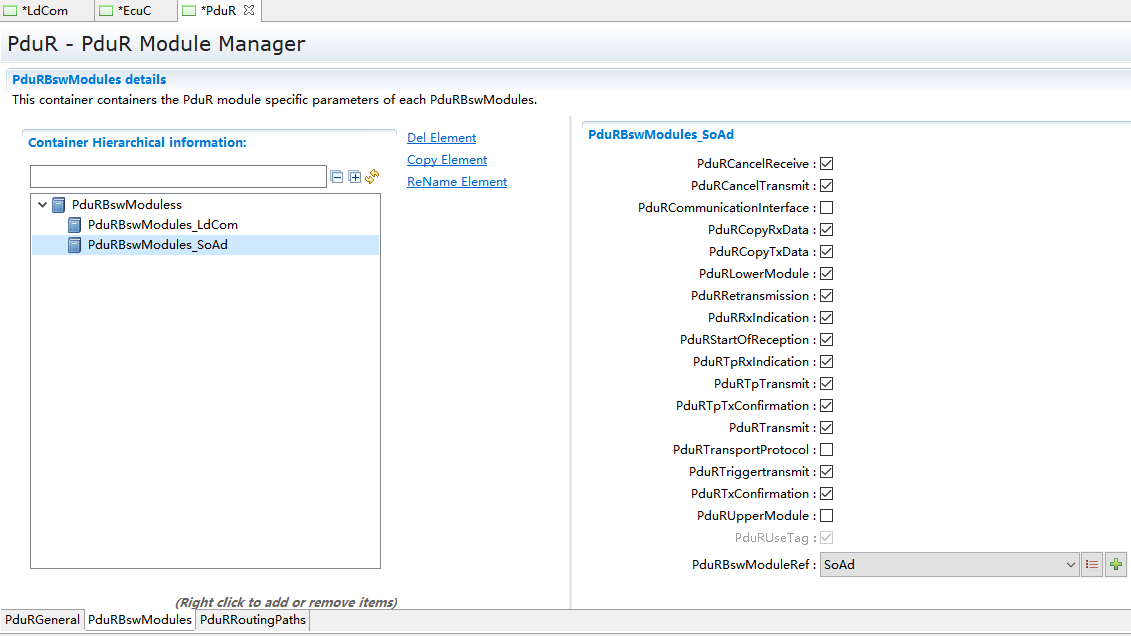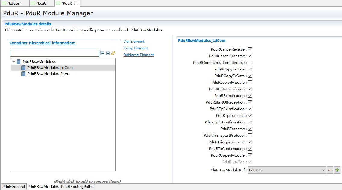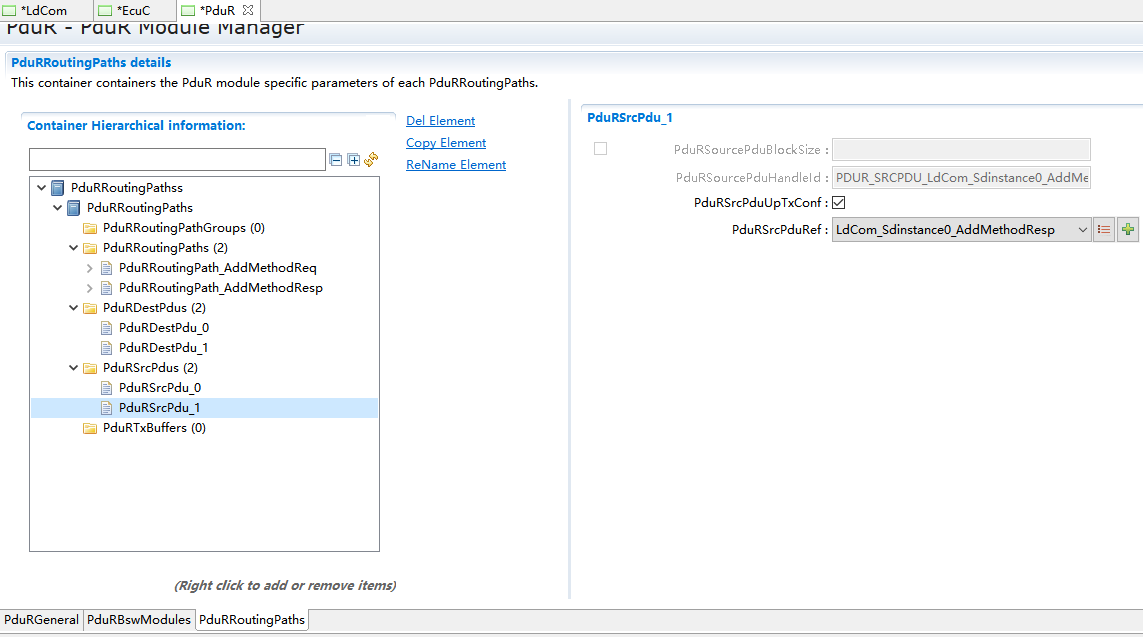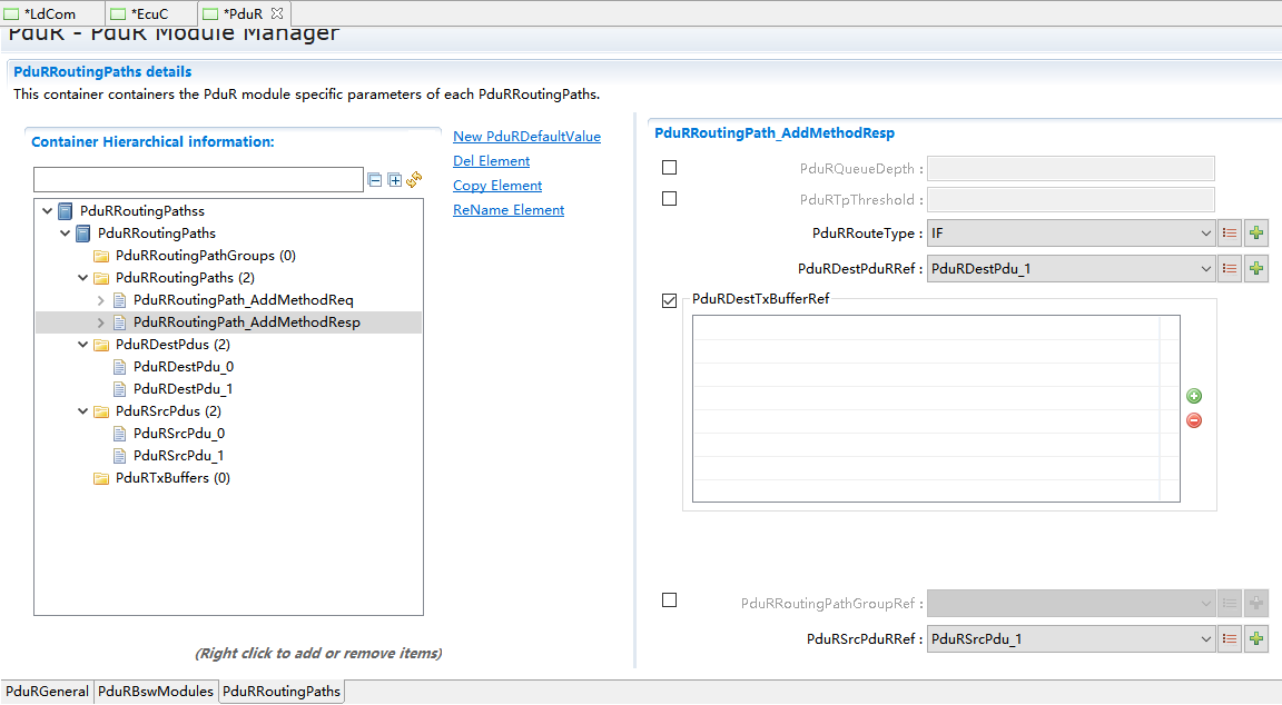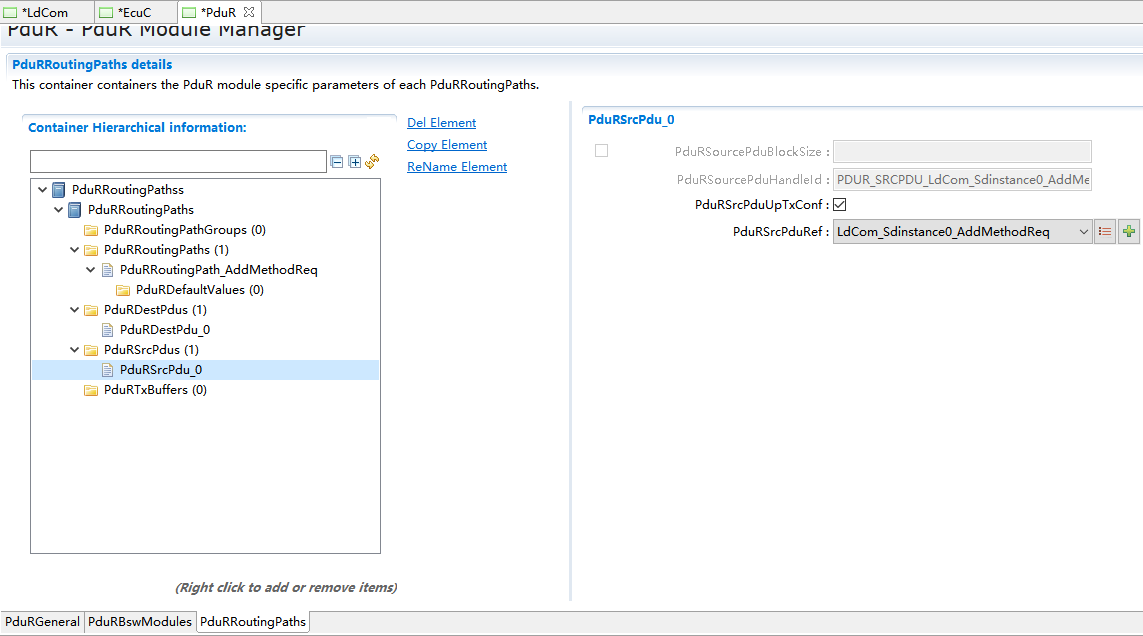 在EcucPduCollection上右键,选择Pdu,生成一个Pdu的配置界面。