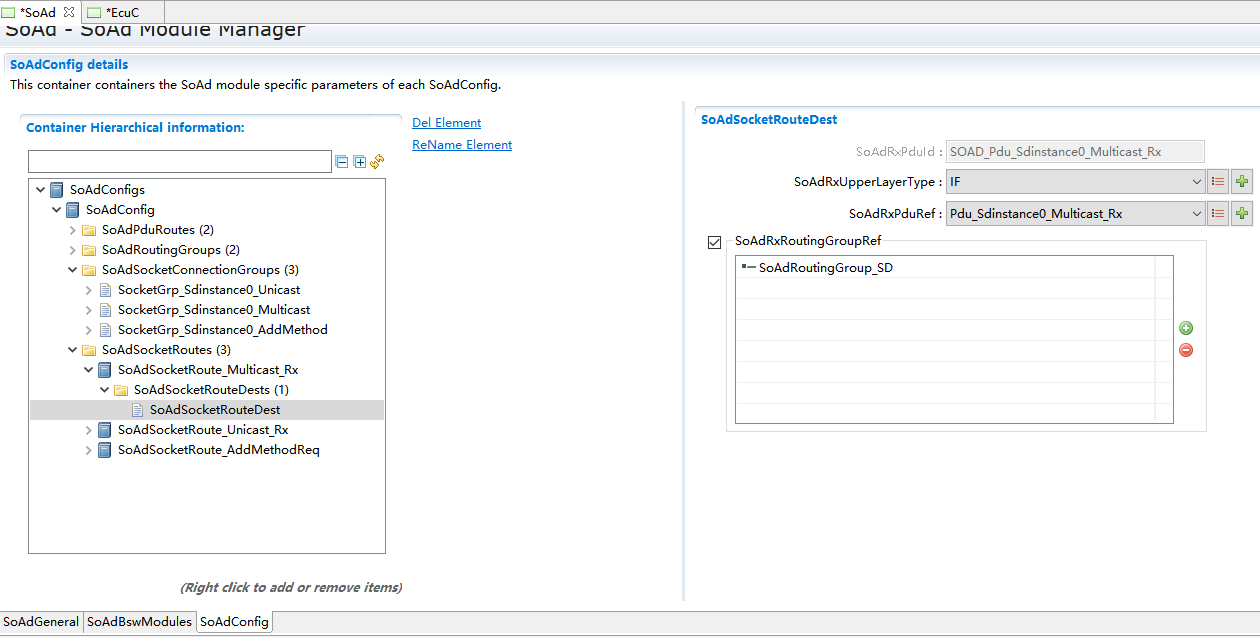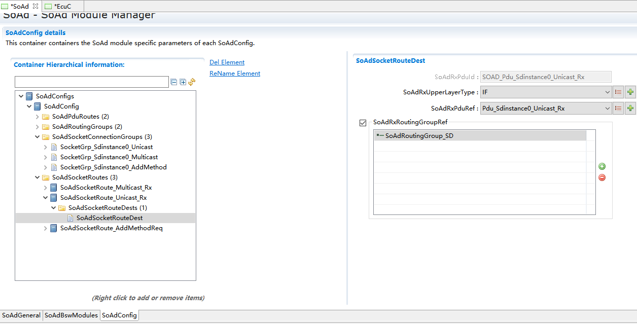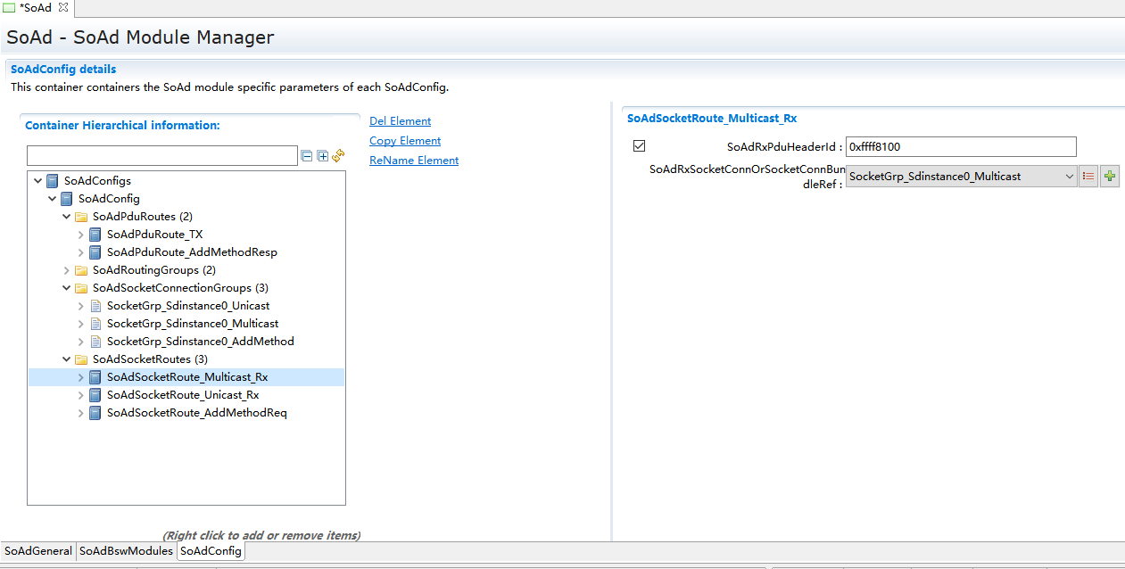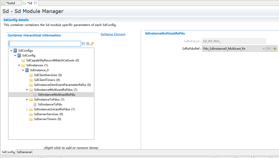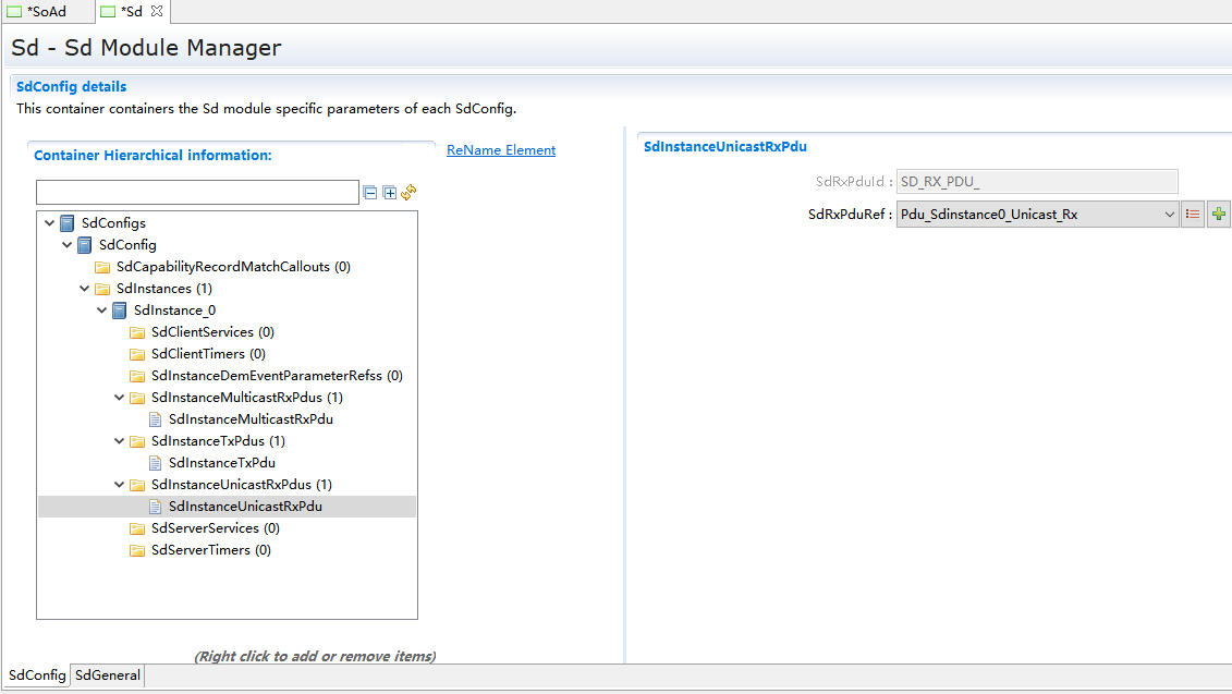 配置3个PDU用于用于SD模块的单/多播收发,pdu长度1400, SdInstance0_Unicast_Rx、SdInstance0_Multicast_Rx、SdInstance0_Tx。